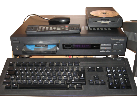 Der Commodore CDTV erschien 1991 und ist eigentlich nur ein Amiga 500 mit CD-ROM-Laufwerk. Wenn man nun die optionale Tastatur, Maus und Floppy anschließt, hat man auch wieder einen echten und vollständigen Commodore Amiga 500. Commodore versuchte mit dem System eine Art Multimediamaschine zu sein. Aber die Abverkäufe hielten sich doch deutlich in Grenzen (u.a. Großbritannien: 29,000 und Deutschland 26,000).